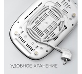 Тип устройства - мультипекарь; Мощность - 700 Вт; Количество комплектов съемных панелей - 3; Длина шнура электропитания - 0,8 м; Вес нетто - 2,45 кг ± 3%; Серия - 6; Тип управления - механический; Напряжение - 220-240 В, 50 Гц; Цвет - черный; Материал корпуса - пластик; Материал съемных панелей - металл; Покрытие съемных панелей - антипригарное; Съемный поддон для сбора масла/жира - есть; Замок - двухуровневый; Размер одной панели - 250 ? 132 ? 9 мм; Габаритные размеры - 305 ? 265 ? 145 мм; Гарантия - 12 месяцев