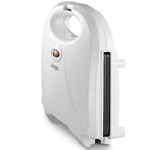 Мощность 750 Вт. Материал корпуса - термостойкий пластик, декорированный хромир. сталью. Антипригар. покрытие сэндвичных форм. Сэндвичные формы на 4 ломтика, с выступающими бортиками, препятствующими вытеканию начинки. Двухпозиционный фиксатор крышки.