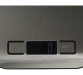 Металлическая поверхность 18*13,7см LCD дисплей с подсветкой Максимальная нагрузка 5 кг Выбор единицы измерения: грамм, фунт, унция, миллилитр Цена деления 1 грамм Функция "Тара" Проризиненные ножки Автоотключение Индикатор перегрузки и заряда батареи Питание от 2*ААА (не входят в комплект) Гарантия 2 года