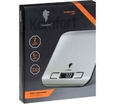 Весы кухонные электронные. Платформа из закаленного стекла с сенсорными кнопками управления. Большой LCD дисплей 141?41 мм. Функции: часы/таймер/температура и влажность окружающей среды. Точность измерения 1 грамм, максимальный груз 5 кг. Питание от 4 батареек тип AAA.