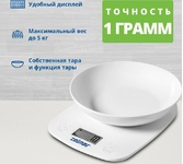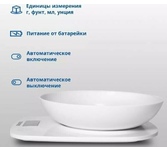 Закалённое стекло, Объём чаши - 1л, LCD-дисплей, Измеряемый вес от 1г до 5 кг, Перевод граммов в унции, Функции измерения веса жидкостей и учёта веса тары