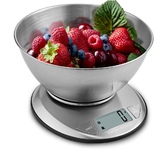 Кухонные весы с красивой формой чаши, с дисплеем с синей подсветкой. С практичной функцией довешивания. С функцией тарирования. Объем чаши 1,2 л, ее можно мыть в посудомоечной машине. Макс. допустимый вес 3 кг. Градуировка шкалы 1 г. Размер цифр: 22 мм. Перенастройка индикации веса в г, кг, фунтах, унциях.