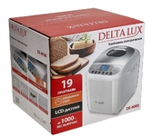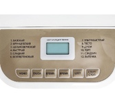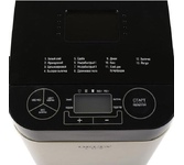 Электрическая хлебопечка 19 программ Мощность 600Вт Выбор веса выпечки 700 или 900 г 3 цвета корочки хлеба LСD-дисплей Большое окошко Форма для выпечки с антипригарным покрытием Таймер на 13 часов Автоподогрев 60 мин Книга рецептов