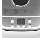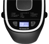 LСD-дисплей. Мощность: 850 Вт. 14 программ. Выбор веса выпечки: 1000-1250-1500 г. 3 цвета корочки хлеба. Приготовление йогурта и джема. Окно контроля. Форма для выпечки с антипригарным покрытием. Таймер на 15 часов. Автоподогрев 60 мин. Память функции при отключении питания. Напряжение: ~220-240 В/50 Гц.