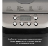 Хлебопечка Centek CT-1416 (сталь) 500/700/1000гр, 600Вт, 18 программ, LCD-дисплей, таймер 15ч, окно