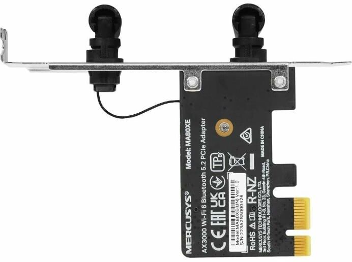 Сетевой адаптер Wi-Fi + Bluetooth Mercusys MA80XE AX3000 PCI Express (ант.внеш.несъем.) 2ант.
