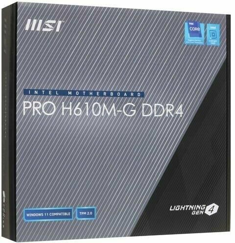 MICROSTAR Материнская плата MSI PRO H610M-G DDR4 / Intel H610 LGA1700 2xDDR4-3200 1xPCIex16 4xSATA 1