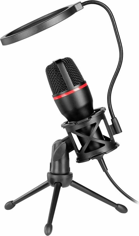 Игровой стрим микрофон, частотный диапазон - 100–10000 Гц, тип подключения проводной, тип микрофона - электретный, мембрана 9,7 мм, разъемы - 3,5-мм джек, 4-пиновый разъем 3,5-мм джек, импеданс 2.2 кОм, чувствительность 120 дБ, длина кабеля -1.8 м.