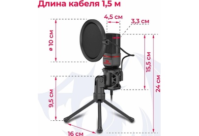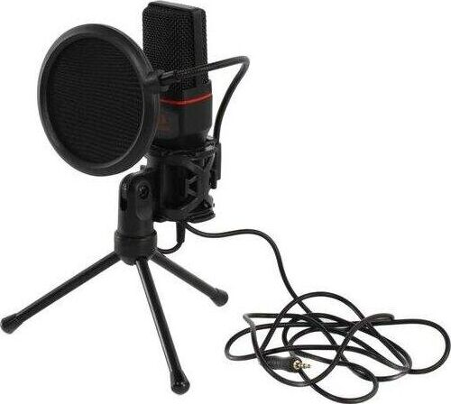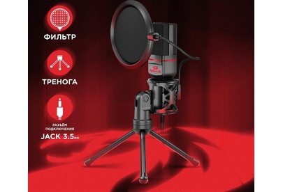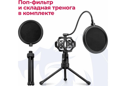 Игровой стрим микрофон+тренога+поп-фильтр, проводной, диаметр мембраны 9.7 мм, частотный диапазон - 30–16000 Гц, разъемы - 3,5-мм джек, импеданс 2.2 кОм, чувствительность 47 дБ, идеально подойдет для стримов и записи видео на YouTube, Twitch и других платформах, легкая компактная конструкция, простое подключение, длина кабеля - 1.5 м.