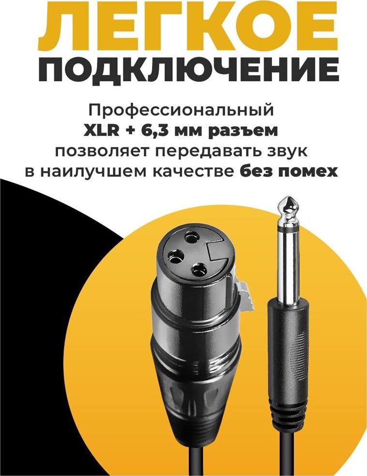Микрофон проводной, частотный диапазон: 60 - 15 000 Гц, сопротивление: 600 Ом, чувствительность: 54 дБ ± 3 дБ, длина провода: 3 м