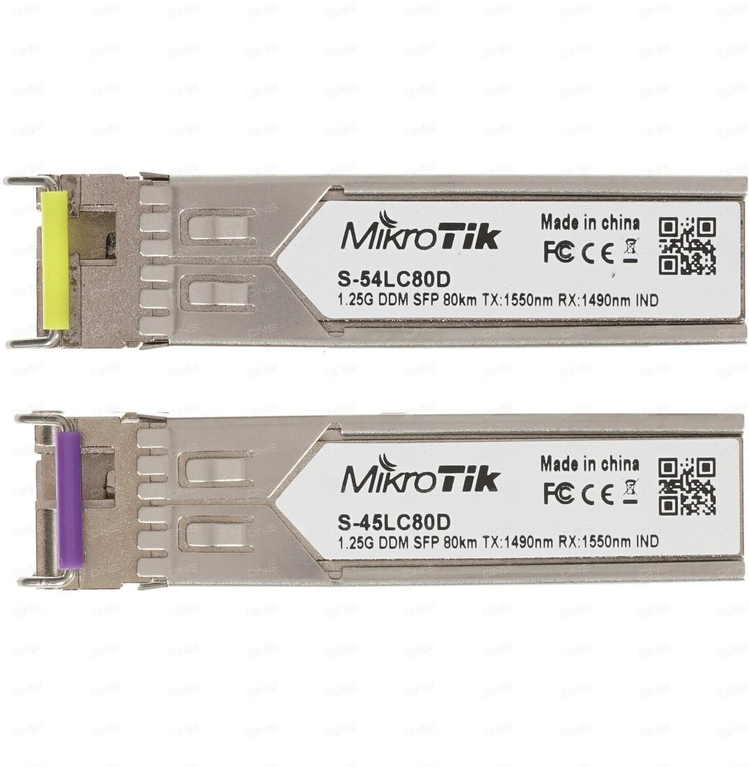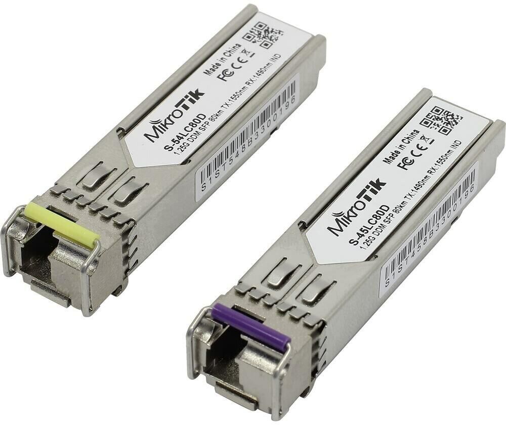 [Сетевое оборудование] MikroTik S-4554LC80D Пара модулей S-45LC80D (1.25G SM 80km TX 1490nm/ RX 1550nm, Single LC connector)+S-54LC80D (1.25G SM 80km TX 1550nm / RX 1490nm,Single LC connector)