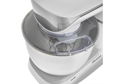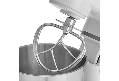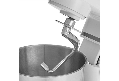 Номинальная потребляемая мощность 1200 Вт, Объем чаши 5 л, Планетарная система смешивания: миксер оснащен уникальной технологией «планетарного» движения, когда венчик совершает обороты в одну сторону, а привод в это время движется по кругу в другую сторону, позволяет осуществлять перемешивание по всему объему чаши, Цвет: белый, Съемная чаша из нержавеющей стали, Съемная прозрачная крышка чаши, Насадки: насадка для смешивания, насадка для замешивания теста, венчик для взбивания яиц и кремов, Лопатка, Противоскользящие ножки, 6 скоростных режимов, Плавная регулировка скоростей, Контроль наклона миксера, Автоматическая блокировка при неправильной установке.