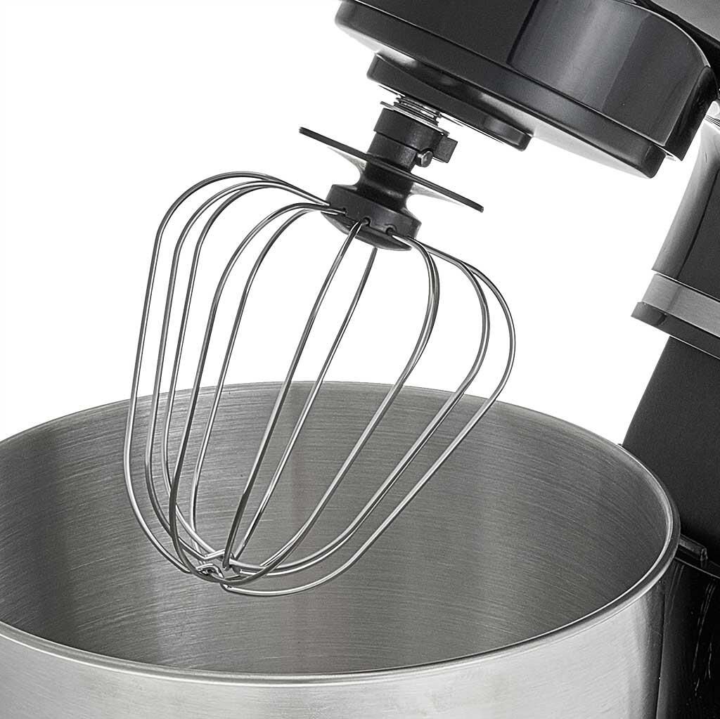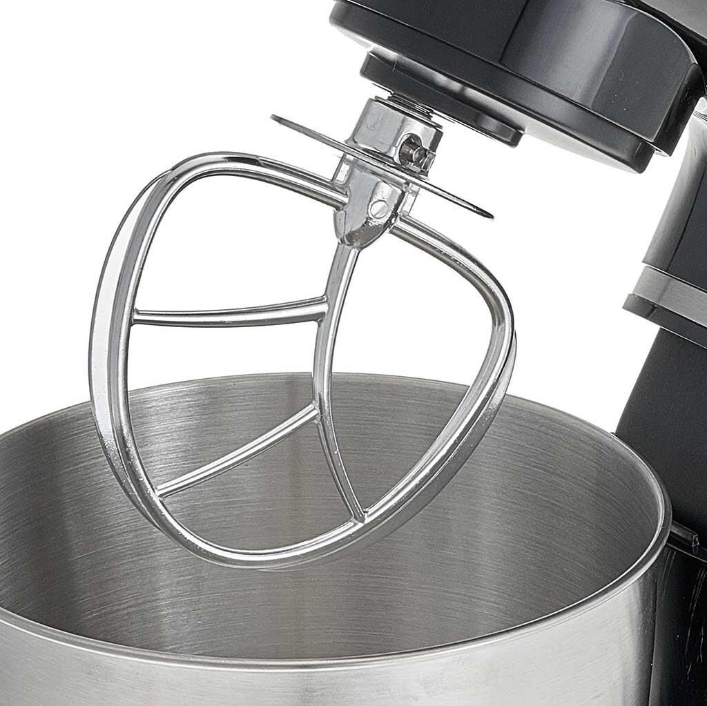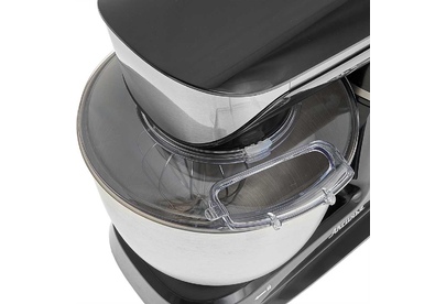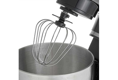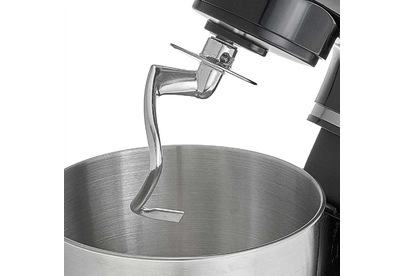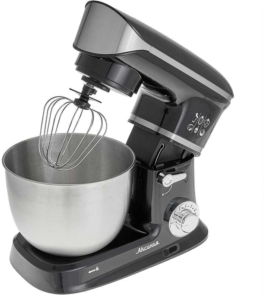 Номинальная потребляемая мощность 1200 Вт, Объем чаши 5 л, Планетарная система смешивания: миксер оснащен уникальной технологией «планетарного» движения, когда венчик совершает обороты в одну сторону, а привод в это время движется по кругу в другую сторону, позволяет осуществлять перемешивание по всему объему чаши, Цвет: черный, Съемная чаша из нержавеющей стали, Съемная прозрачная крышка чаши, Насадки: насадка для смешивания, насадка для замешивания теста, венчик для взбивания яиц и кремов, Лопатка, Противоскользящие ножки, 6 скоростных режимов, Плавная регулировка скоростей, Контроль наклона миксера, Автоматическая блокировка при неправильной установке.