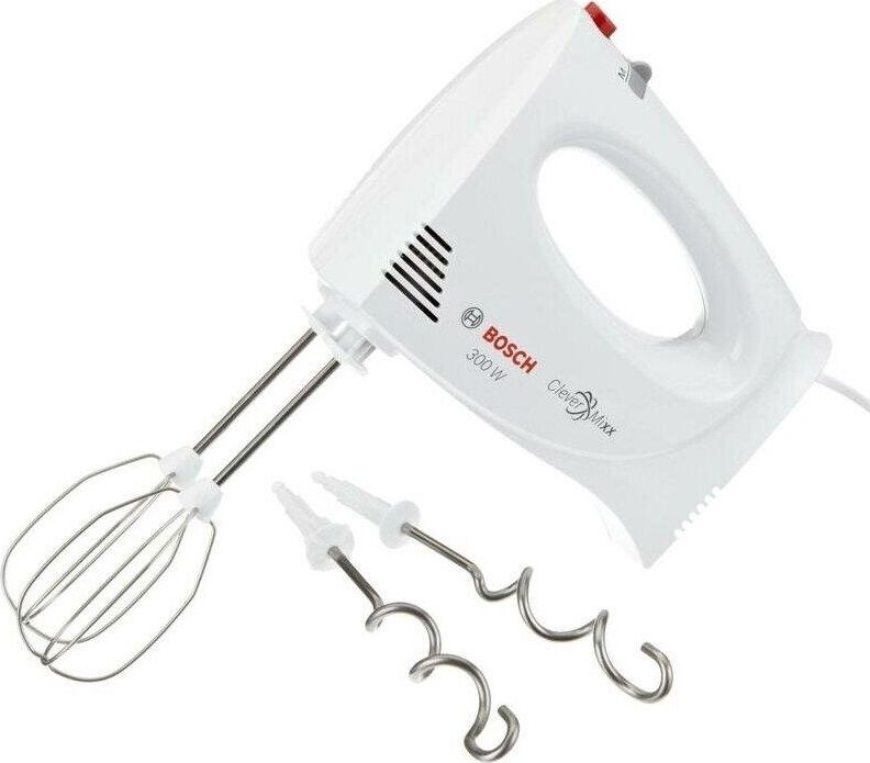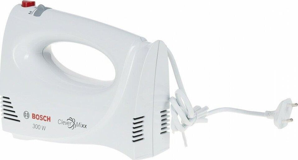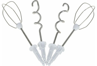 Мощность 300 Вт, Тихий режим работы,2 скорости + дополнительный импульсный режим, 2 венчика специальной формы для оптимального взбивания крема,2 крюка для замешивания теста.