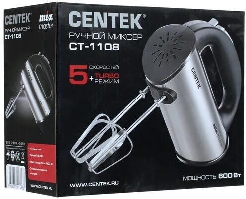 Миксер Centek CT-1108 (черн/сталь) 600Вт, 5 скоростей+турбо, взбивание/замешивание
