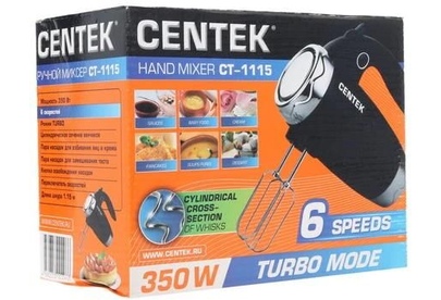 Миксер Centek CT-1115 (черный/хром) 350Вт, 6 скоростей+турбо, взбивание/замешивание