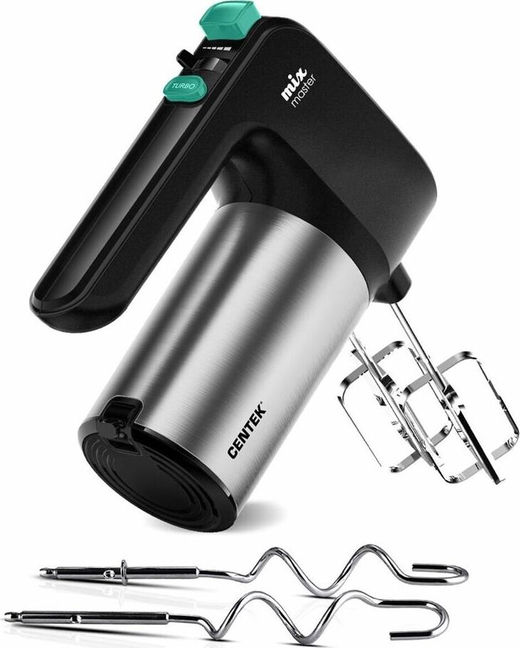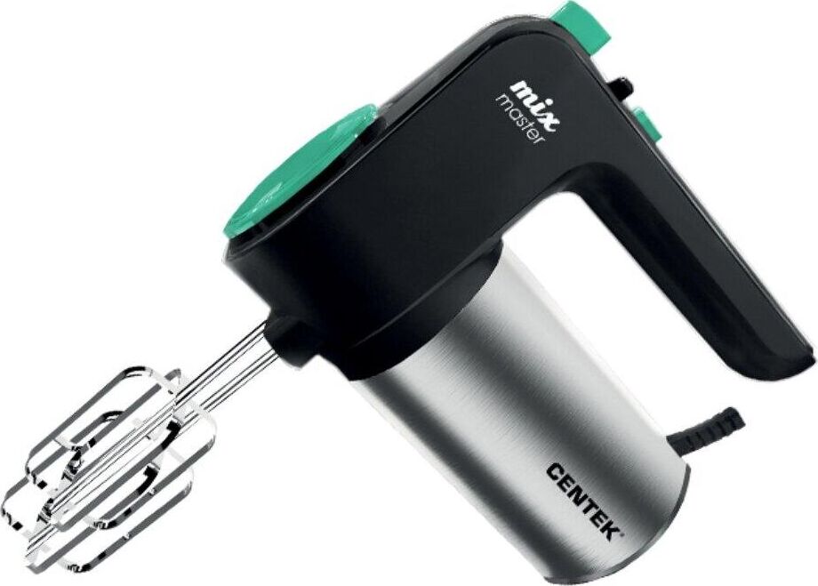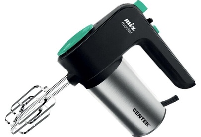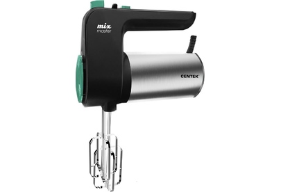 CENTEK CT-1123 Мощность800 Вт Кол-во скоростей6 Режим «Турбо» Стальная отделка корпуса Пара насадок для взбивания Пара насадок для замешивания Кнопка освобождения насадок