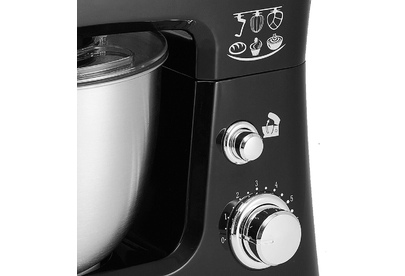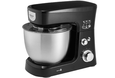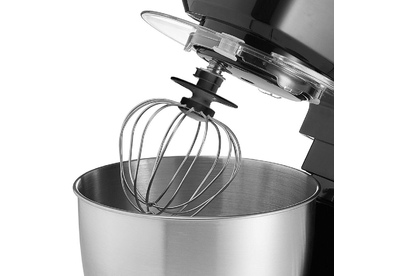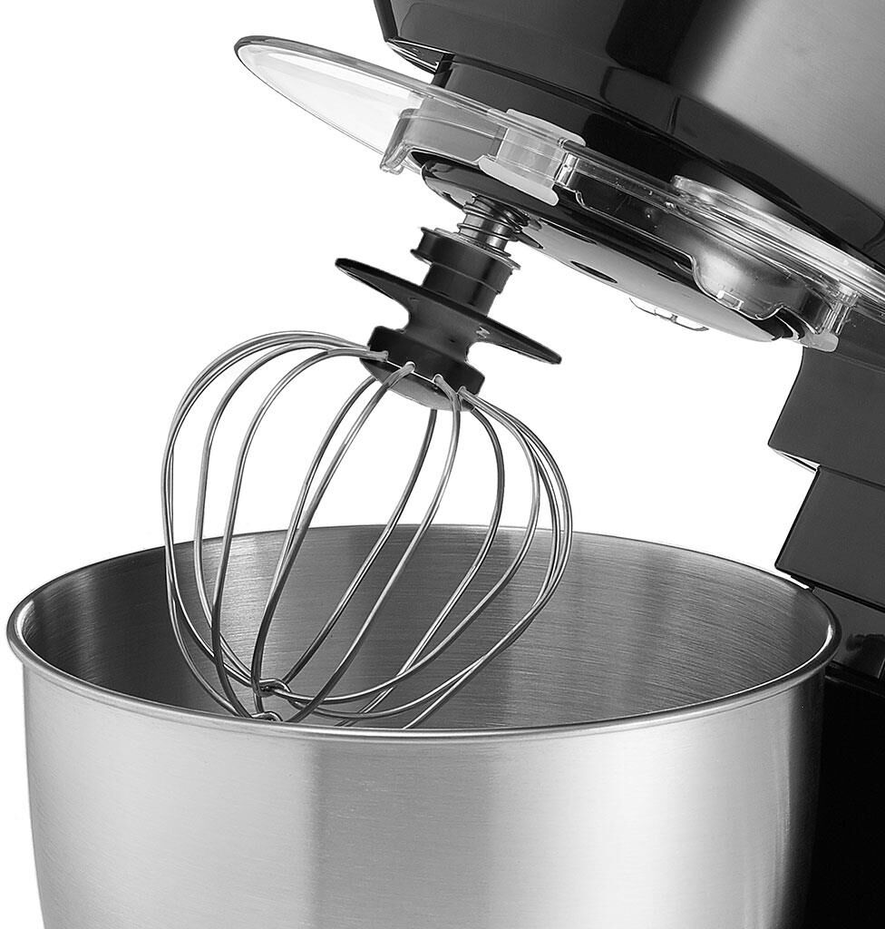 Номинальная потребляемая мощность 1000 Вт, Объем чаши 3,5 л, Планетарная система смешивания: миксер оснащен уникальной технологией «планетарного» движения, когда венчик совершает обороты в одну сторону, а привод в это время движется по кругу в другую сторону, позволяет осуществлять перемешивание по всему объему чаши, Многофункциональный: с его помощью можно взбивать коктейли, замешивать тесто, готовить картофельное пюре и разнообразные кондитерские изделия, Цвет: черный, Съемная чаша из нержавеющей стали, Съемная прозрачная крышка с отверстием для добавления продуктов.