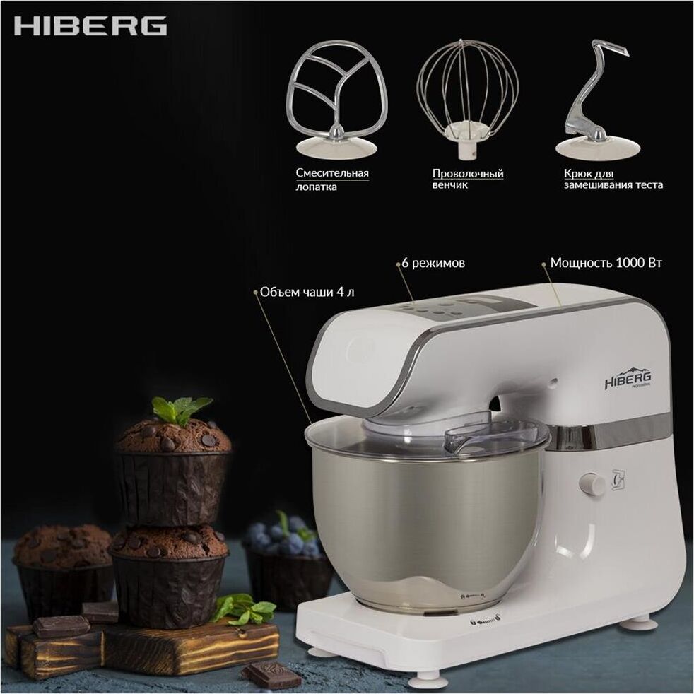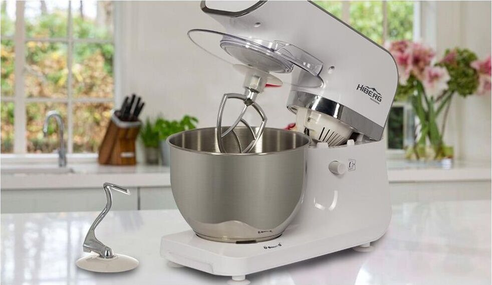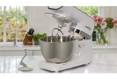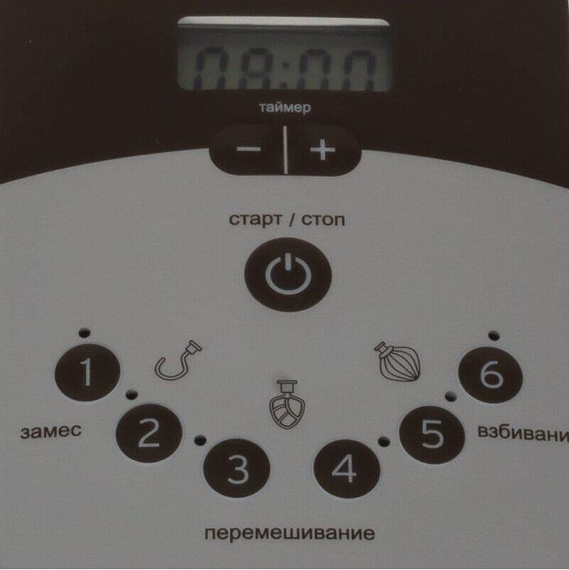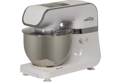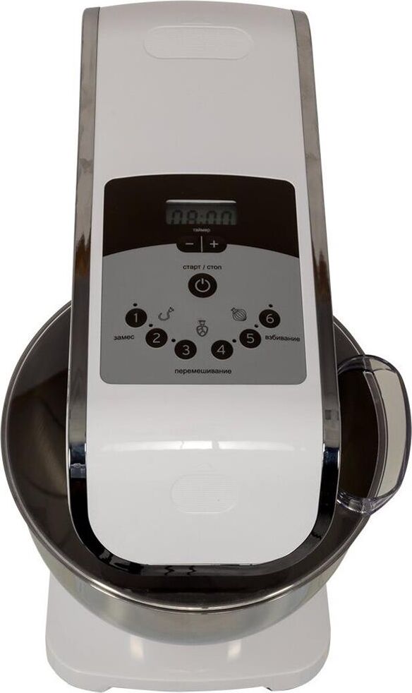 Номинальная потребляемая мощность 1000Вт Цифровая панель с 6 скоростями и LCD дисплеем, Чаша 4 л из нержавеющей стали Напряжение/частота 220-240В/50Гц Прозрачная крышка для чаши, Аксессуары: : крюк для замешивания теста, проволочный венчик для взбивания