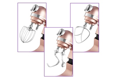 Комплектация 1. Моторный блок — 1 шт. 2. Чаша миксера — 1 шт. 3. Крышка чаши миксера — 1 шт. 4. Венчик для взбивания — 1 шт. 5. Насадка для смешивания — 1 шт. 6. Крюк для замешивания теста — 2 шт. (маленький + боль