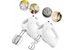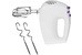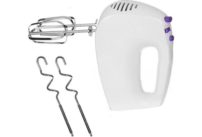 Тип ручной. Мощность 250 Вт. Количество скоростей 5. Турборежим есть. Венчик для взбивания есть. Крюки для теста есть. Цвет белый и фиолетовый.