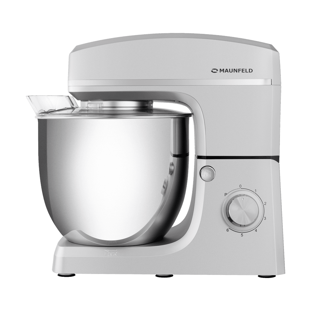 Миксер Maunfeld MF-432S подойдет тем, кто активно готовит в больших количествах, ведь объем его чаши составляет 10 литров, которая изготовлена из нержавеющей стали, этот материал не боится физических повреждений, ржавчины, взаимодействия с различными химическими соединениями, его просто мыть, ведь он легко отмывается от разных продуктов. Сам корпус изготовлен из пластика. Устройство имеет современный и стильный внешний вид, изготовляется в серебристом цвете. Универсальность дизайна позволяет сочетать его с кухней любого интерьера. Для приготовления блюд разнообразного уровня, будь то тесто для домашнего пирога по семейному рецепту или крем для торта или пирожного ресторанного уровня, имеется шесть скоростей. Вы можете использовать импульсный режим или включить или отключить планетарное вращение насадок и привода. В комплектации предусмотрено три насадки: венчик, специальный крюк для замешивания теста, лопатка для более тщательного перемешивания смесей, а также крышка. Чтобы обеспечить безопас