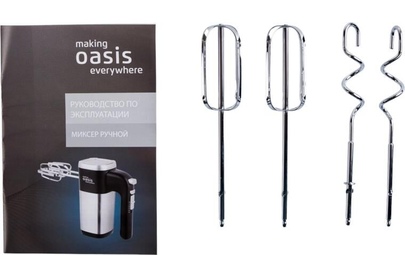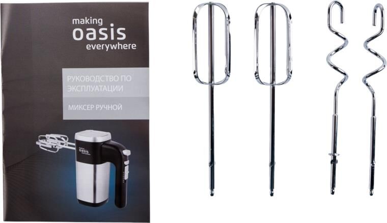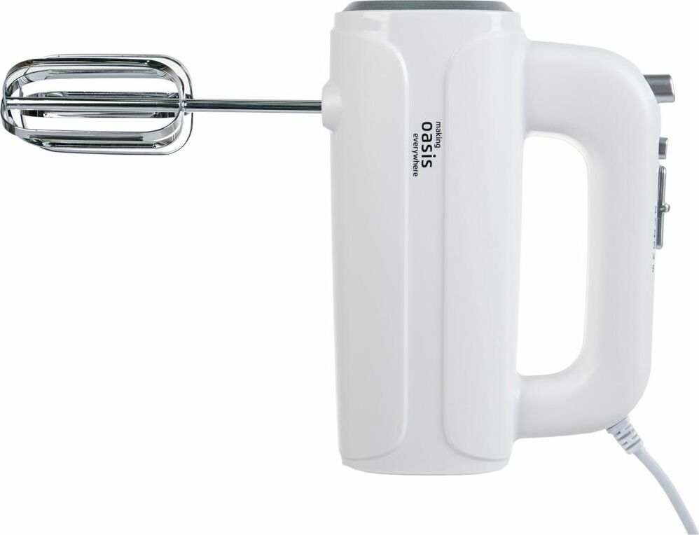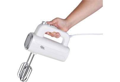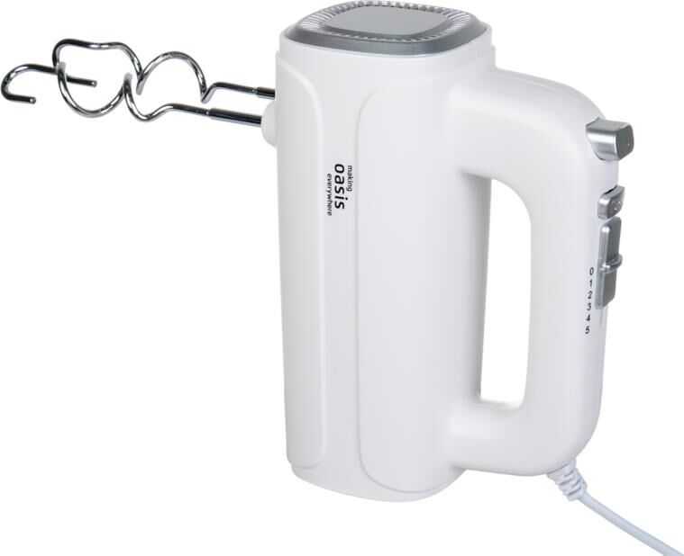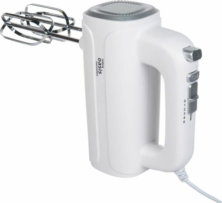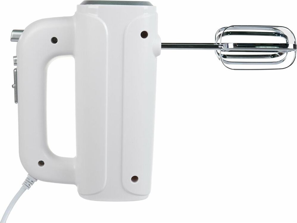 Параметры электросети, В/Гц 220-240 / 50-60 Мощность, Вт 500 Цвет белый, серебристый Количество скоростей 5 Время непрерывной работы 3 мин Размеры изделия, мм 275?85?205 Вес, кг 0,98 2 комплекта насадок (венчики и крюки) Кнопка быстрого отсоединения насадок Регулировка скорости Импульсный режим Защита от перегрева