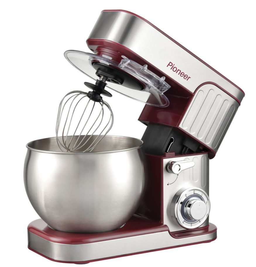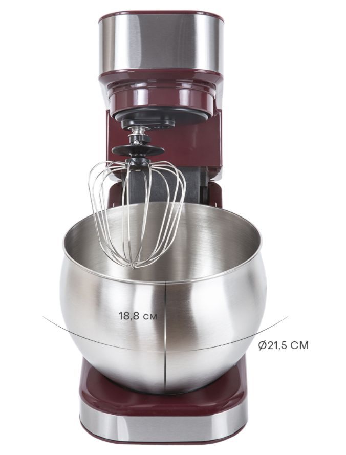 Миксер планетарный, корпус с покрытием из нержавеющей стали, cтильный дизайн, максимальная мощность: 1300Вт, чаша из нержавеющей стали, объем чаши 6 л, защитная прозрачная крышка от брызг, 6 скоростей,импульсный режим, защита двигателя от перегрева, светодиодный индикатор включения, наклонная головка позволяет легко снимать чашу и менять аксессуары, планетарное вращение для тщательного перемешивания, удобная крышка с отверстием для добавления продуктов во время перемешивания, противоскользящие ножки