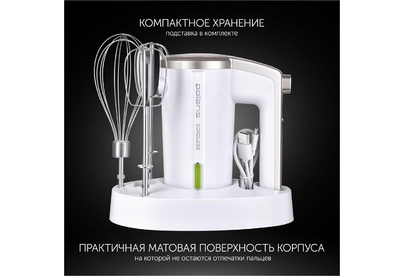 Мощность, 200 Вт.Количество скоростей 3.Технология PROtect+ двойная защита двигателя (от перегрева и перегрузки) обеспечивает надежность и долговечность. Беспроводная технология обеспечивает полную свободу действий на кухне. До 30 минут автономной работы.Время зарядки аккумулятора 5 часов. 3 скоростных режима.Кнопка высвобождения насадок.Дополнительная защита от перегрузки.Световая индикация работы и уровня зарядки.Венчик для взбивания из нержавеющей стали.2 венчика для перемешивания из нержавеющей стали. Подставка для хранения.Аккумулятор: Li-ion 2000 мАч, 7,4 В.Зарядное устройство: Входное напряжение: 100-240 В.