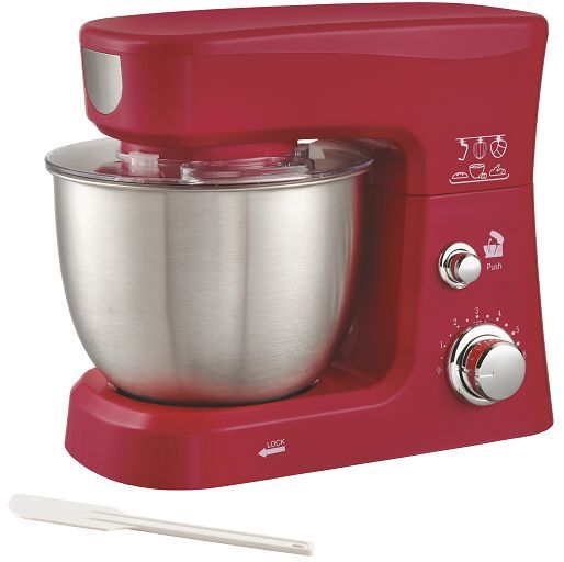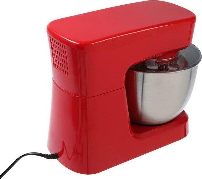 Миксер настольный с планетарным вращением насадок, максимальная мощность 1000 Вт, 6 скоростей работы, чаша из нержавеющей стали (3,5л) с прозрачной крышкой и отвертсием для добавления продуктов в процессе, 3 насадки (объемный венчик, плоский венчик и крюк), лопаточка в комплекте.