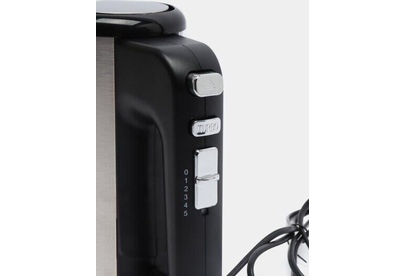 Ручной миксер, мощность 500 Вт, 5 скоростей работы + турбо-скорость, защита от перегрева, корпус и насадки из нержавеющей стали, в комплекте венчики для взбивания и крюки для замешивания теста.