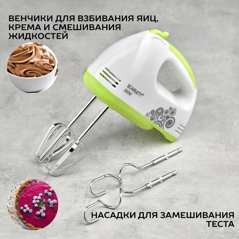 Миксер SCARLETT SC-HM40S05 белый с зеленым