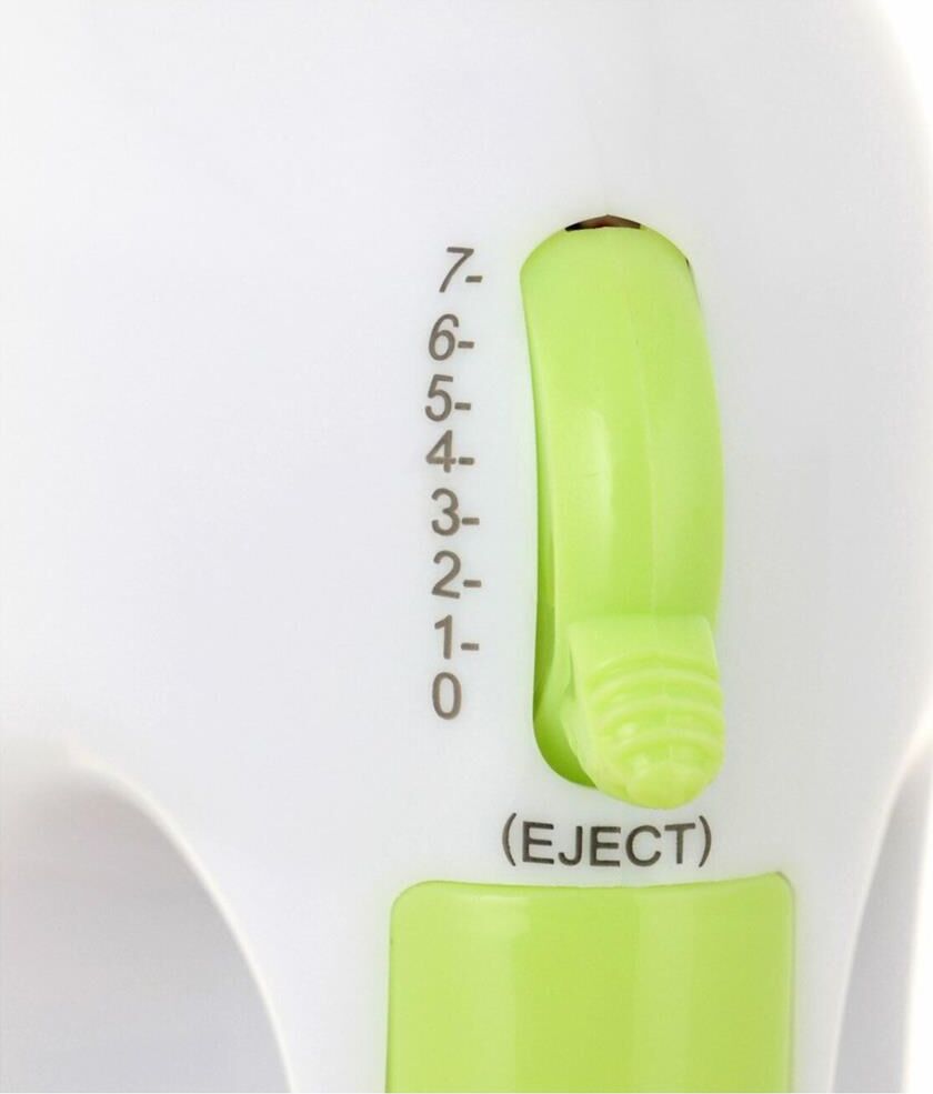 Мощность макс. 200 Вт 7 скоростных режимов 2 венчика для взбивания яиц и крема, смешивания жидкостей 2 насадки для размешивания теста Кнопка для быстрого и легкого извлечения насадок