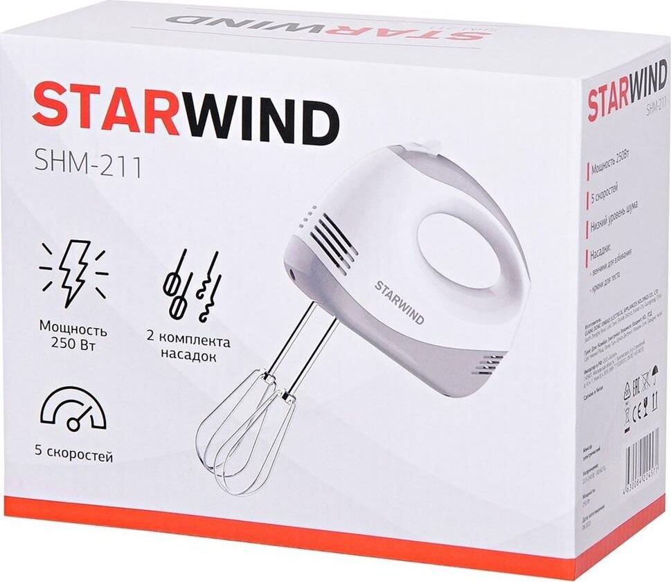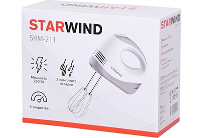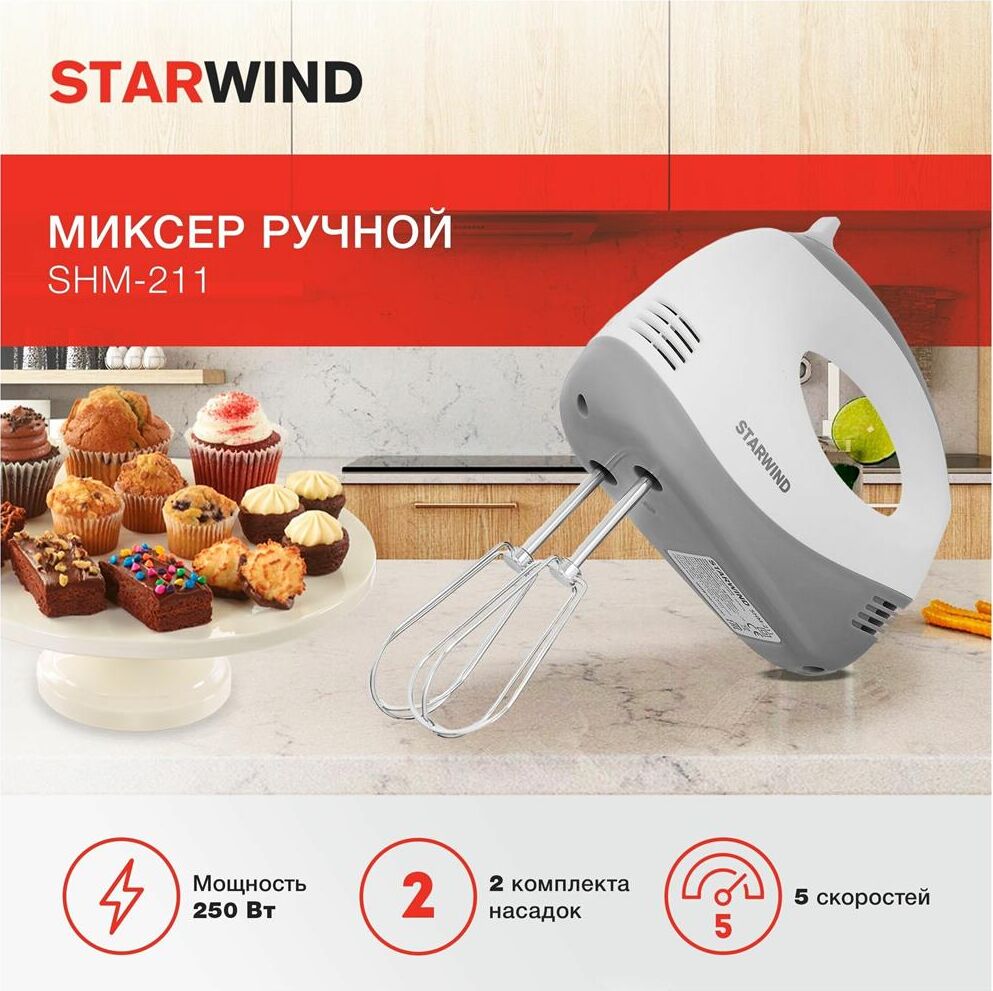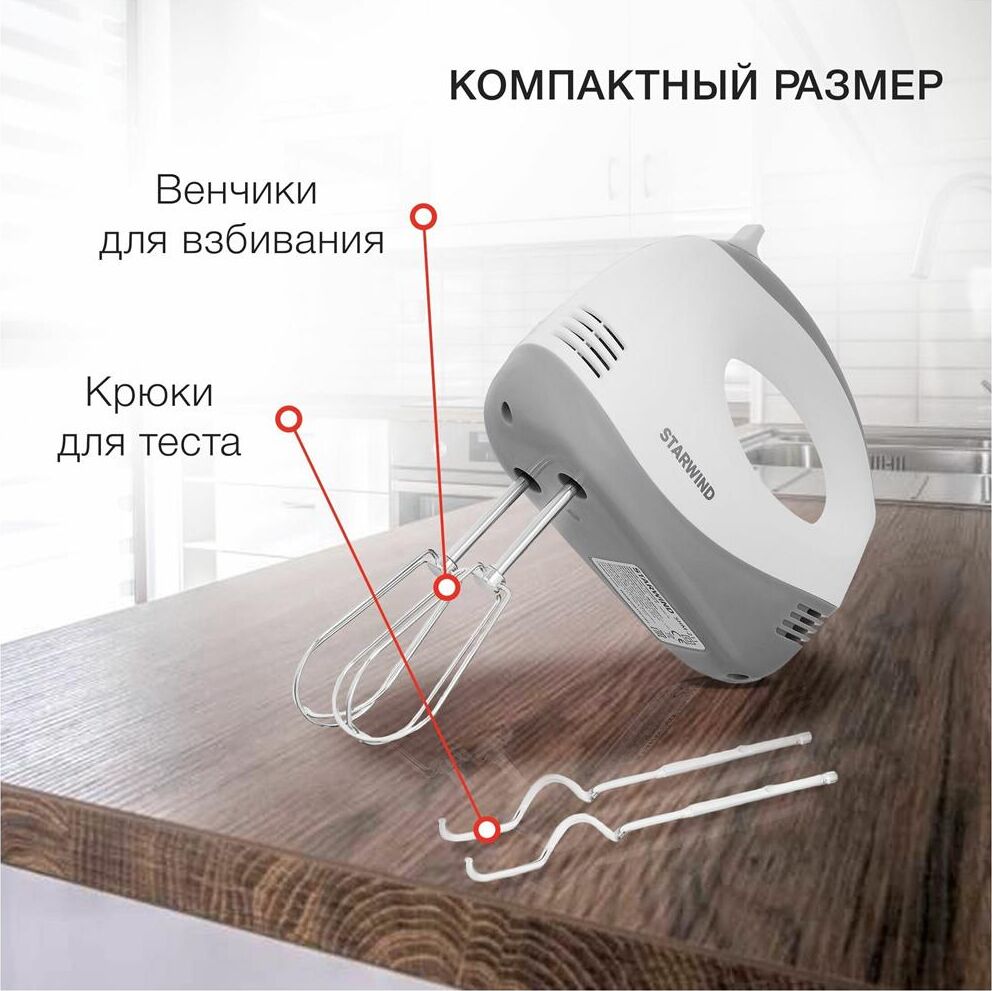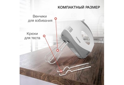 Тип ручной Мощность 250 Вт Количество скоростей 5 Венчик для взбивания Крюки для теста Цвет миксера белый/серый Габариты упаковки (ед) ДхШхВ 0.21x0.1x0.33 м Срок гарантии 12 мес.