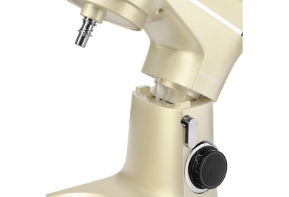 1300 Вт 8 скоростей, импульсный режим. В комплект входит венчик для взбивания, крюки для теста,лопатка для перемешивания, защитный обод 3 насадки Материал чаши — нержавеющая сталь Ёмкость чаши 4,5 л Прорезиненные ножки Цвет бежевый Срок гарантии 12 мес