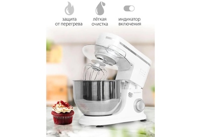 Планетарный миксер с таймером на 60 мин.LCD дисплей.Мощность 1400 Вт.6 скоростей вращения вала.