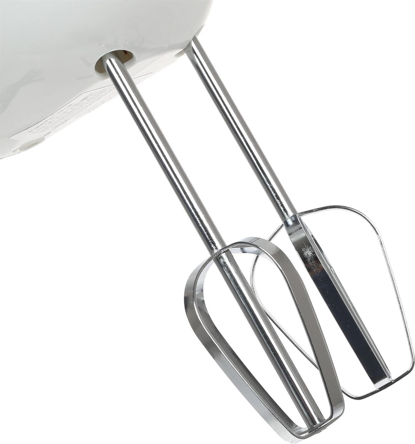 Миксер, 250W, 5 скоростей работы, кнопка извлечения насадок, двойной набор насадок: два венчика для взбивания яиц и кремов, две насадки для размешивания тяжелого теста, смешивание жидкостей, замешивание теста, приготовление пюре, взбивание сливок и белков.