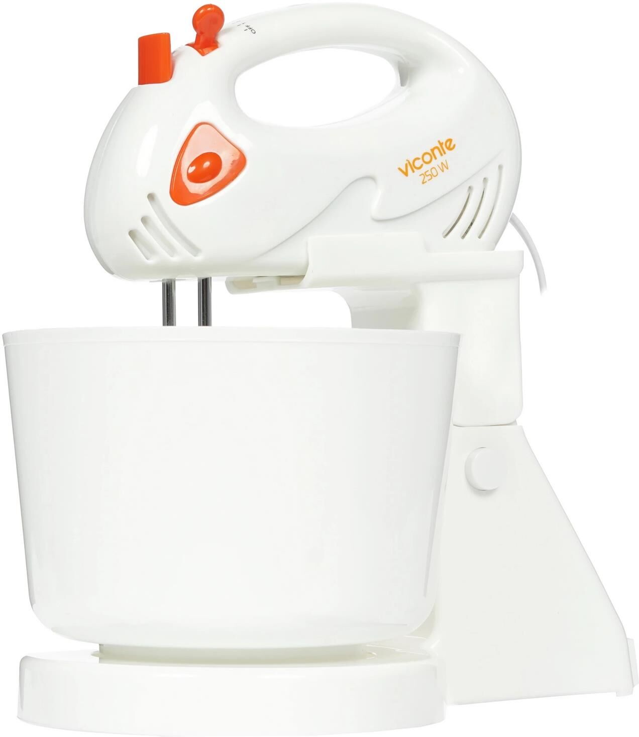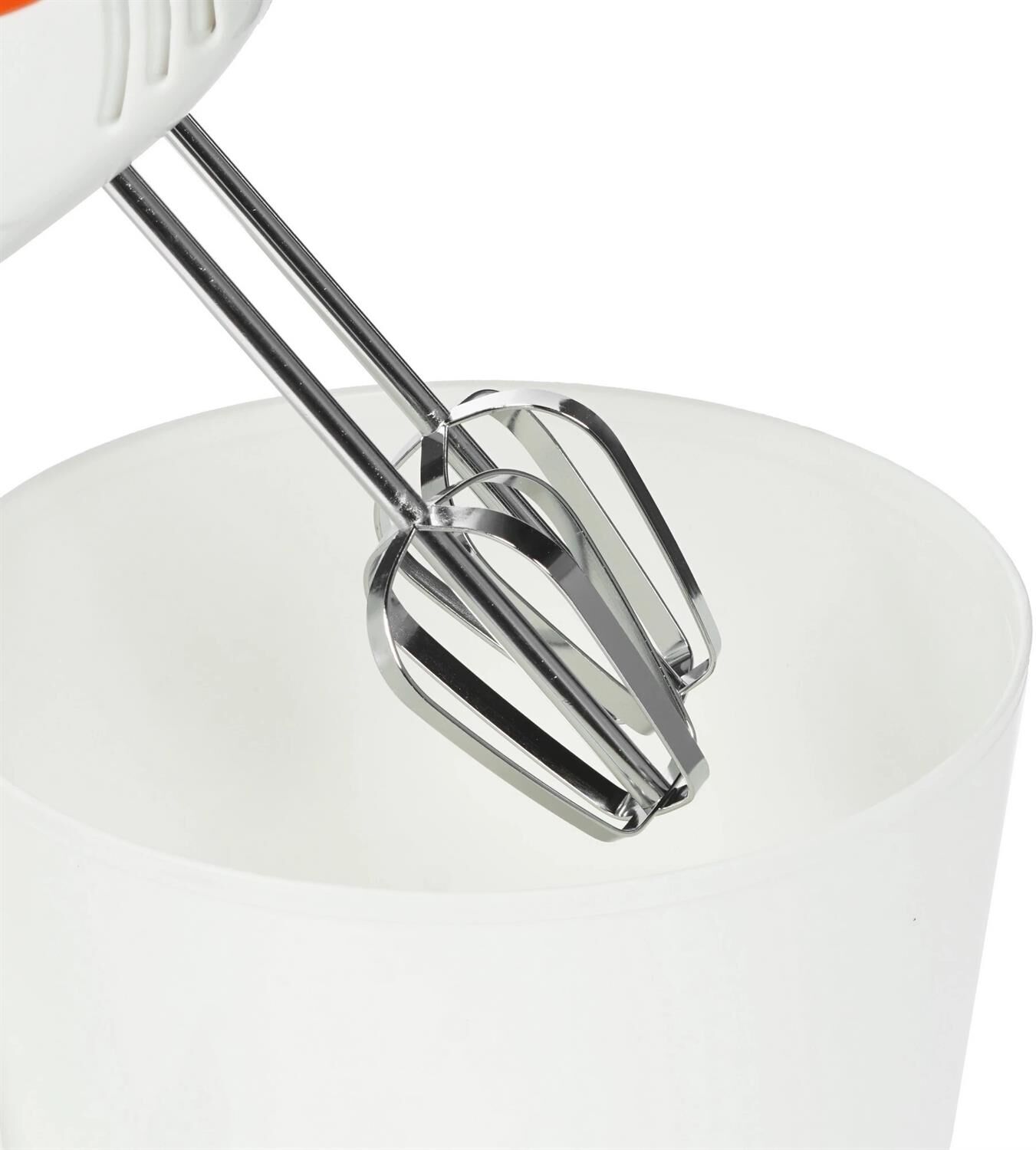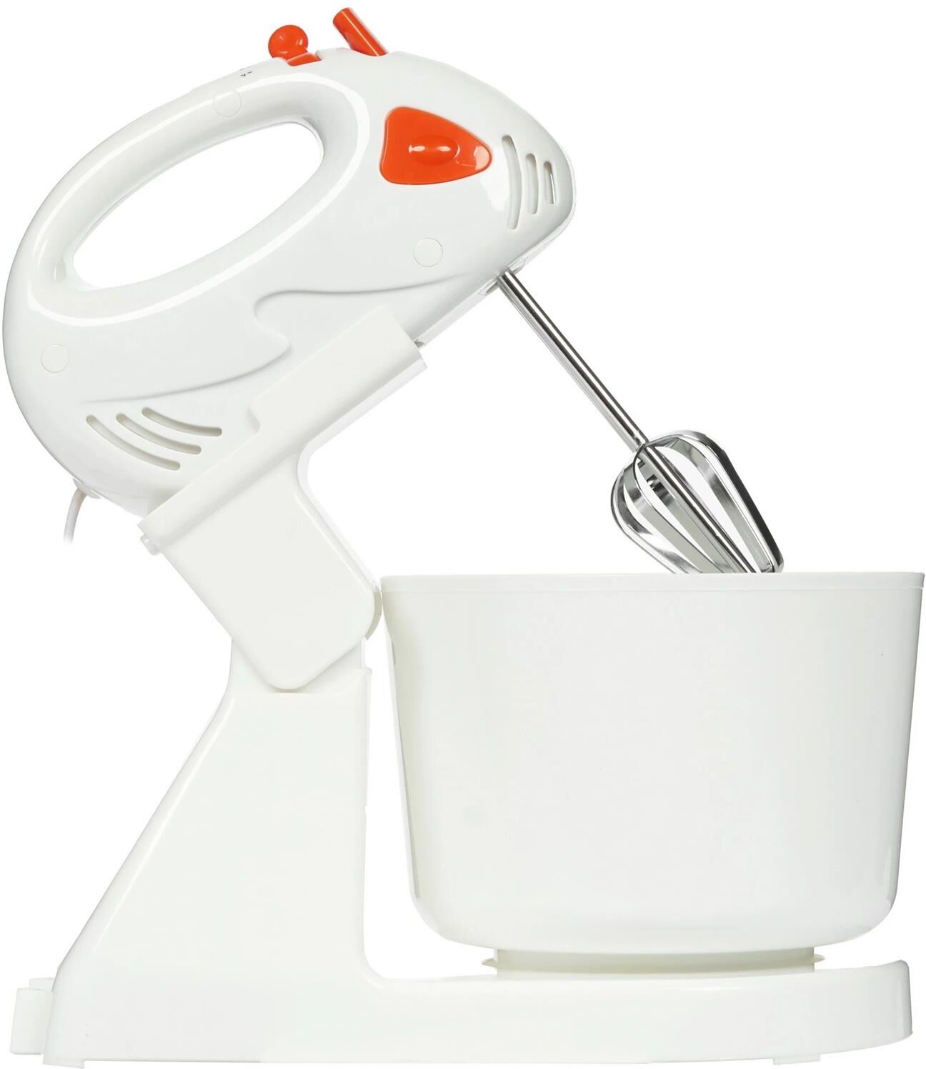 Миксер с чашей, 250W, 7 скоростей работы, пластиковая чаша 2,0л для смешивания. кнопка извлечения насадок, двойной набор насадок: два венчика для взбивания яиц и кремов, две насадки для размешивания тяжелого теста, смешивание жидкостей, замешивание теста, приготовление пюре, взбивание сливок и белков.
