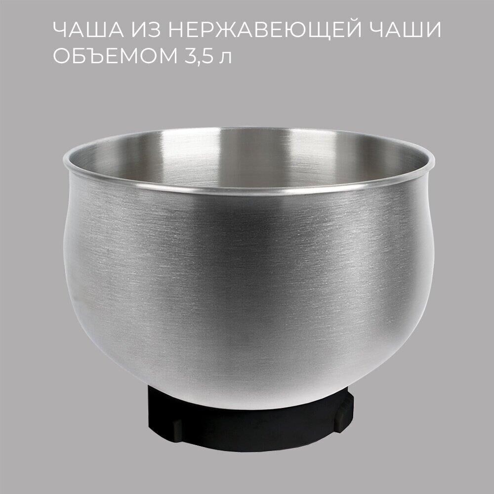 Мощность 1000 вт Число скоростей 6 Венчик для взбивания 1 Крюки для замешивания теста + Количество насадок 3 Защитная крышка на чашу + Материал чаши нержавеющая сталь Объем чаши 3,5 л Планетарное вращение насадок + Прозрачная крышка для чаши с окном для добавления ингредиентов + Материал корпуса пластик Лопатка в комплекте + Длина сетевого шнура 100