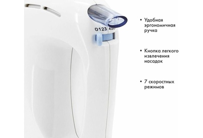 312-02 Миксер электрический Мощность 200 Вт Два комплекта хромированных насадок Кнопка легкого извлечения насадок Семь скоростей 230 B ~ 50 Гц