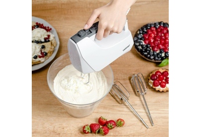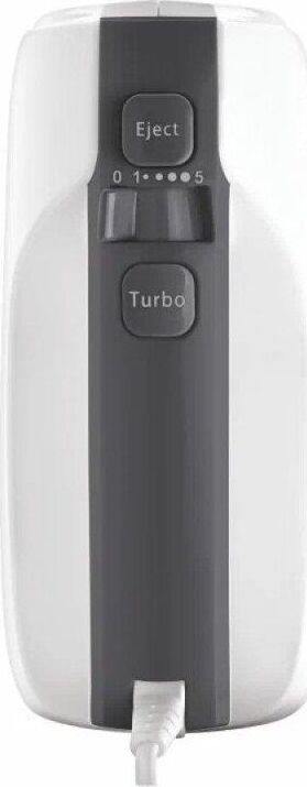 Потребляемая мощность: 750 Вт*Количество скоростей: 5*Функция «Турбо»: Да*Насадка конус‘’: 2 шт*Венчик для взбивания: 2 шт*Крючки для замешивания теста: 2 шт*Ручка с покрытием «Soft Touch»