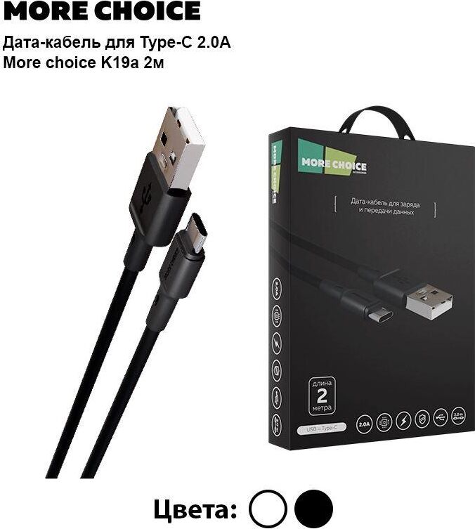 Дата-кабель USB 2.0A для Type-C More choice K19a TPE 2м