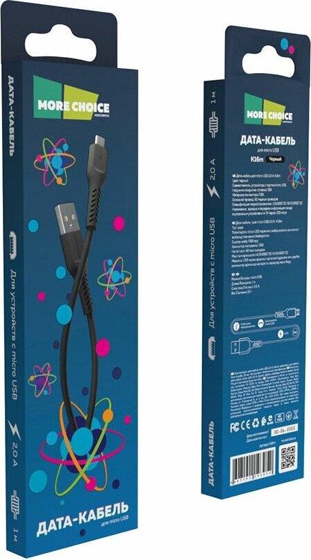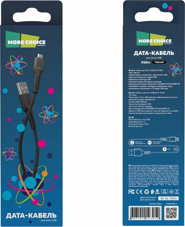 More choice K16m Дата-кабель USB 2.0A для micro USB - 1м Black