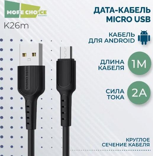More choice K26m Дата-кабель USB 2.0A для micro USB - 1м Black