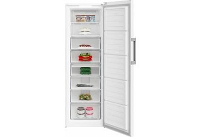 Вертикальный морозильник. Размеры (ВхШхГ), см: 185х59,5х65. Общий объем 312 л. Полезный объем 275 л. 1 компрессор (R600a). No Frost. Электронное управление, Электронное Display на двери. Авто.разморозка. Быстрая заморозка Quick Freeze. Технология FreezerGuard. Время сохранения t°C без электричества: 18 ч. Уровень шума: 39 дБ. Перенавешиваемая дверца. Внутреннее освещение. Внешняя ручка. Cигнал открытой двери, 6 ящиков, 7 полки, лоток для льда, лоток для пельменей. Мощность замораживания: 16 кг/24 ч. Климатический класс: SN-T. Класс энергетической эффективности: А+. Энергопотребление в год: 324 кВт/ч. Цвет: Белый