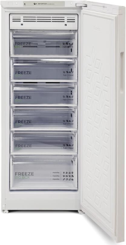 Морозильник с функцией холодильника; Габариты ШхВхГ, см: 60х145х62,5; Цвет: Белый; Количество компрессоров: 1; Дисплей; Объем морозильной камеры: 230 л; Общий полезный объем: 160 л; Инверторный компрессор; Управление: Электронное; Количество камер: 1; Система Full No Frost; Мощность замораживания: 14 кг/сутки; Класс энергоэффективности: A+; Возможность перевешивания двери; Автономное сохранение холода: 12 ч; Минимальная температура в морозильной камере: -20 °C; Сигнализация повышения температуры в морозильной камере; Количество ящиков в морозильном отделении: 6; Блокировка от детей; Режим "Быстрая заморозка"; Суточный расход электроэнергии, при температуре окружающего воздуха 24°C: 67 кВтч; Индикация