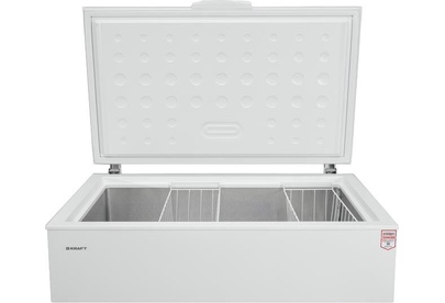 (ШхГхВ)112х70х84,5см.Цвет белый.Общий объем — 365 л.Полезный объем — 340 л Класс энергопотребления — А.Вид хладагента — R600a.2 корзины для хранения Работает в диапазоне температу от от -15°С до +38°С