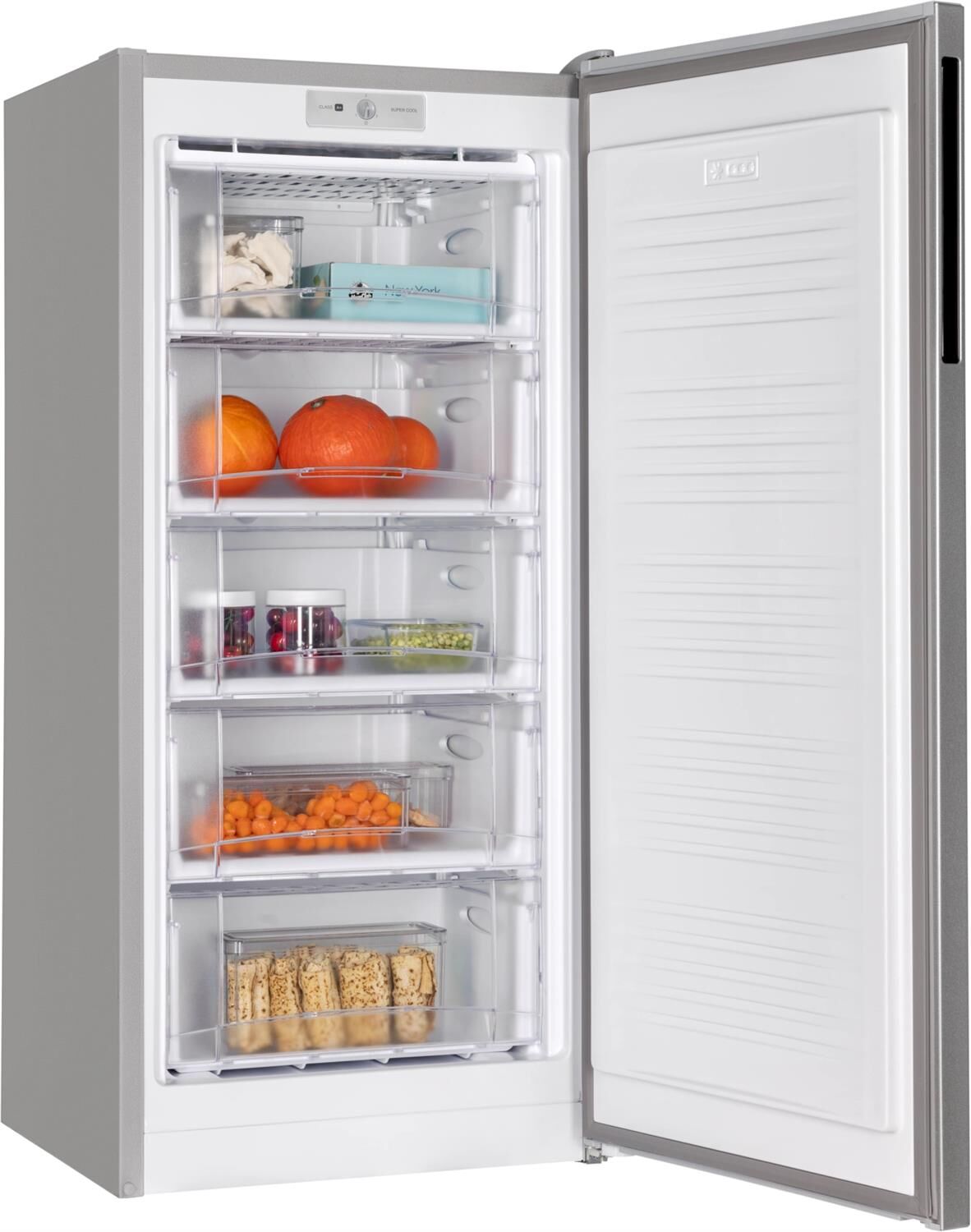 175 л, класс А+, 5 секции МК, 5 выдвижных ящика из пластика, новые вертикальные ручки, съемный уплотнитель двери, 128х57х63 см, цвет: серебристый