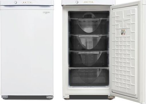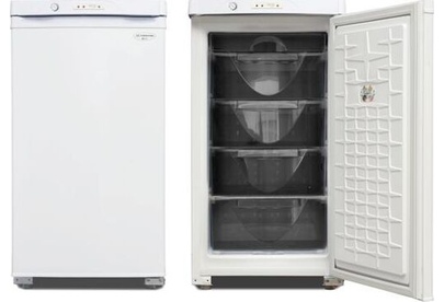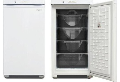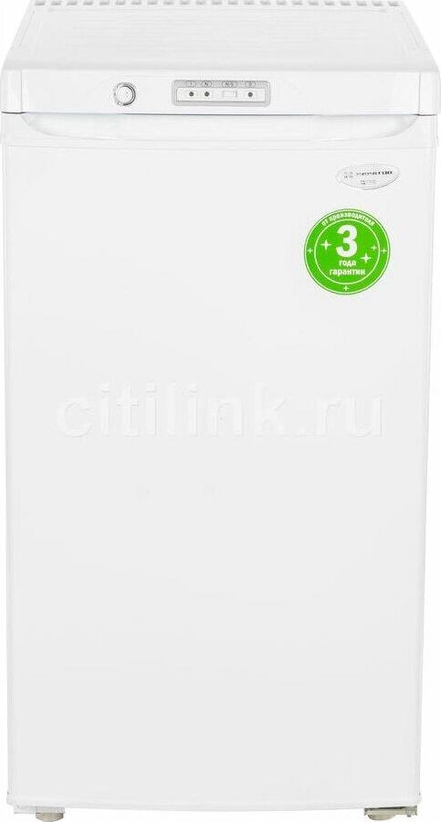 Габариты (ВхШхГ) 89.7х48х60см. Общий объем 94л. Тип управления: механический. 1 компрессор. Мощность замораживания до 9 кг/cутки. Размораж-е ручное. Температура в режиме хранения не выше -18C, в режиме замораживания -24С. Класс энергопотребления В Возможность перевешивания двери Цвет: белый.