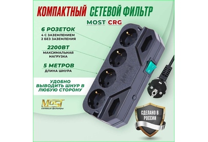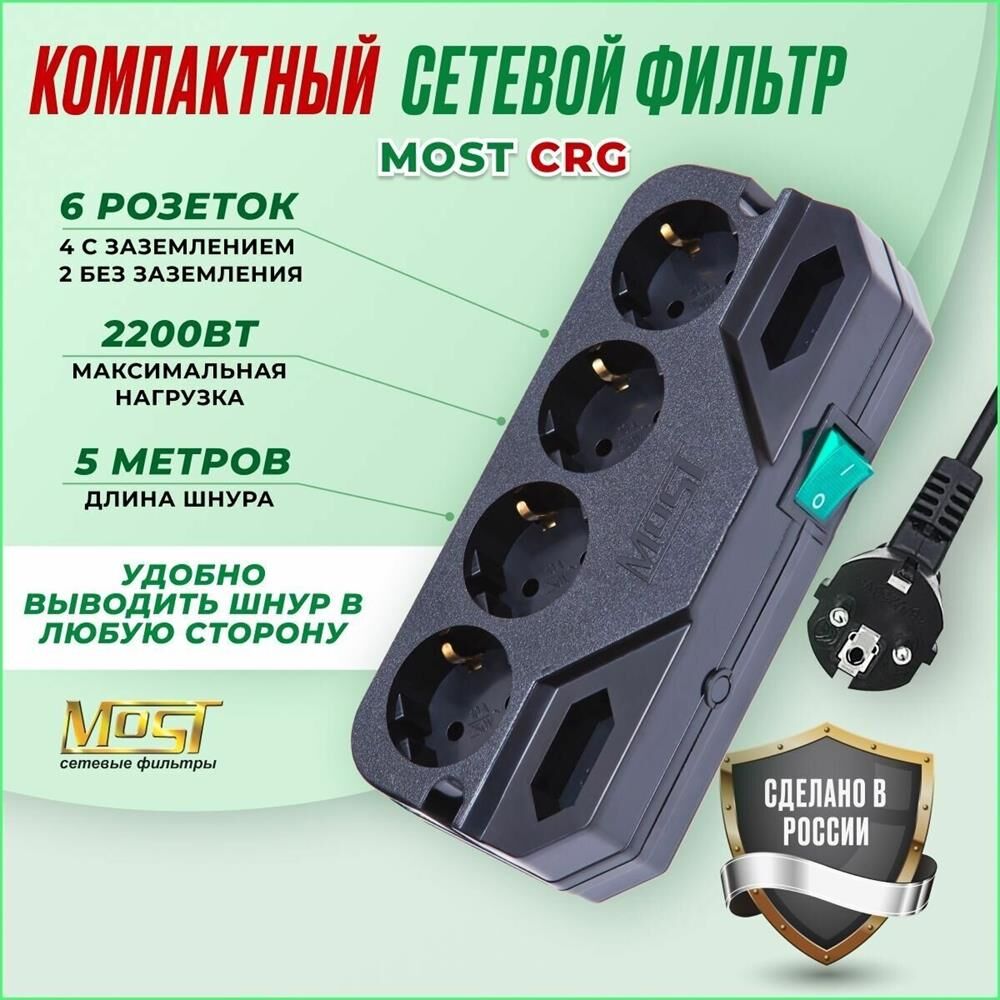 MOST Сетевой фильтр CRG, 5м, черный [ crg-ч-5 м]